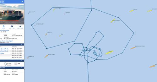 A curiosidade está precisamente no desenho dessa trajetória. O traço que ela descreveu no GPS revela um – lamentamos dizer assim tão bruscamente – pênis gigante. Exatamente isso: o navio traçou um Big Dick bem no meio do Red Sea. É sério. Confira as fotos.