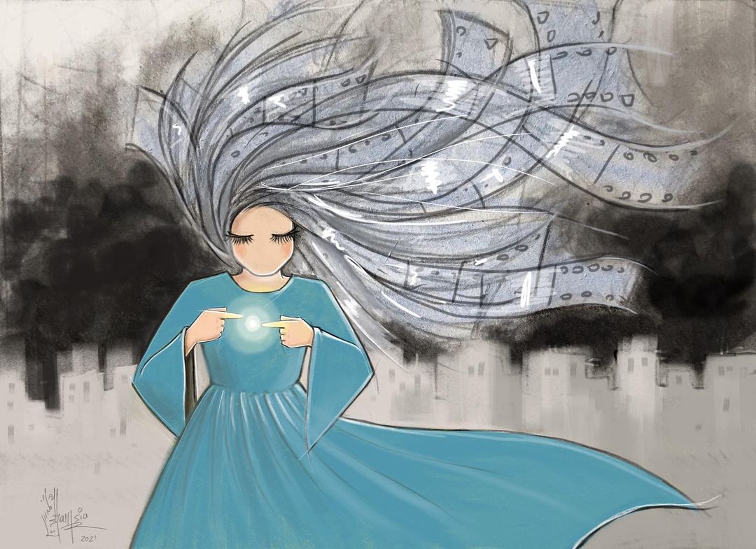 Ela costuma desenhar mulheres. Muitas vezes elas estão diante de homens. Não raro, diante de talibãs. Detalhe fundamental: elas não têm boca.