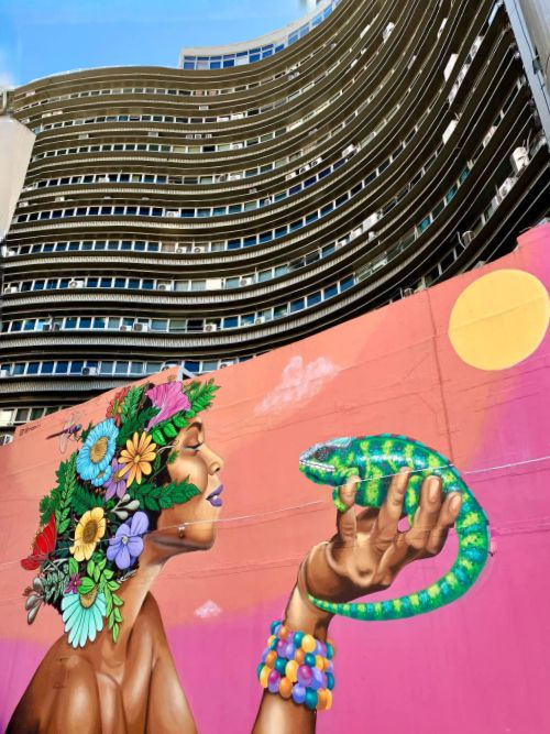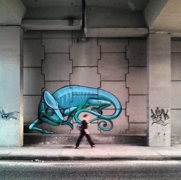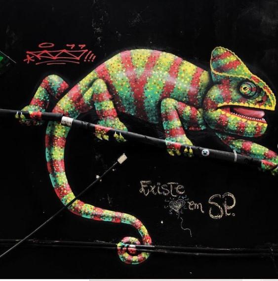 “A maioria dos grafiteiros ocupam o muro como uma tela em branco, a minha ideia é justamente dar vida aos muros, como se ele fosse um habitante da cidade. Esse camaleão transmite a ideia de adaptação, cada espaço pede formas e cores diferentes, para que se obtenha um destaque dentro de uma paisagem cheia de interferências”